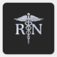 Registered Nurse RN Silver Caduceus on Black Square Sticker