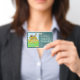 This highly visible badge easily clips to your clothing during a visit. It shows that your dog, with picture you add, is registered with the therapy dog organization you specify. It explains that you are at a facility with permission and not claiming your dog as a service dog. It describes the services your dog provides. This product provides excellent visibility without interfering with petting or grooming the dog. It is less likely to be mistaken for a service dog misrepresentation as might a a vest, shabrack or jacket on the dog.