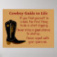 Cowboy Guide to Life — Si vous vous trouvez dans un trou. La première chose à faire est de commencer à creuser. ...Ne manquez jamais une bonne occasion de la fermer. — Ne vous attachez jamais avec vos bottes. — affiche