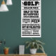 Golf Rules In Force Poster 25.00" x 48.16". Un pour le mur du golfeur. Fait un grand cadeau pour le golfeur. Imprimé sur papier d'affiche sans acide de 7,9 points, de 53 livres. Finition semi-brillante. Qualité de la galerie Impression Giclee.