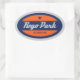 Oval signage design featuring the neighbourhoods of New York City. Official orange and blue colours of NYC. Rego Park neighbourhood of Queens.