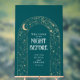 Enhance your rehearsal dinner with an elegant teal and gold celestial welcome sign featuring moon, stars, planet and a shooting star.