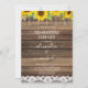 Rustic Sunflower Farmhouse String Lights Lace Rehearsal Dinner Wedding Invitations on Wood background - includes beautiful and elegant script typography with modern Country Farm House Sparkle for the special Wedding day celebration.