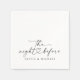 Elegant and modern, these black and white rehearsal dinner napkins feature the phrase “the night before” in stylish handwritten script with a small heart accent. Designed with a minimalist layout, these wedding napkins add a chic, personal touch to your celebration—perfect for setting the tone at your rehearsal dinner.