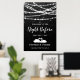 Rehearsal Dinner Welcome To the Night Before Sign - this design features string lights and stars on a black textured background. And on the bottom - Two swans forming a heart shape.