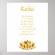 Reiki Gold Lotus flower design poster. Theme - healing energy therapy chakras "new age" "wall art" decor picture spiritual spa therapist master salon