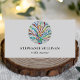 This reiki master's business card is decorated with a colourful mosaic tree of life design on a pale grey background.