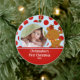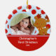 Cute Photo Christmas Ornament featuring an adorable reindeer with a red & blue background, just add YOUR PHOTO! Perfect for first christmas & second christmas. A Wonder Christmas gift sure to be treasured for many years to come. ©zenware graphics
