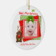 Le texte et la photo de ce vêtement photo de rennes de Noël de bébé sont faciles à customiser. Le design festif rouge et vert de rennes mignons en fait un joli et traditionnel ornement de Noël de Baby's First. Pour modifier le texte et la photo, utilisez les options de personnalisation. Pour des modifications plus importantes de l'ornement, y compris la modification de la police, de la taille de la police, de la couleur de la police, du placement du texte, de la taille de l'image et/ou du placement de l'image, utilisez l'option customiser.