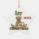 An adorable baby's 1st Christmas ornament featuring a teddy bear with reindeer antlers and a candy cane and candy cane striped text that reads "1st Christmas". It's dated 2010 but you can easily change the date!