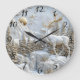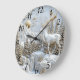 Amidst a serene winter landscape, intricately crafted clocks capture the essence of the season. A majestic reindeer stands gracefully by a cascading waterfall, framed by towering snow-laden trees and a soft golden sun illuminating the snowy peaks.
