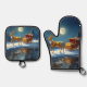 Beautiful Reindeer Christmas Sleigh Oven Mitt & Pot Holder Set