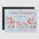 Personalized Reindeer Family Merry Christmas Card. Fun and cute, add the names of your family to the reindeers on the front of the card. You can also change the family name and greeting. Reindeers have Santa hats and red scarves on a blue snowflake background.