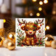 Celebrate the season with this delightful flat holiday card featuring a Highland cow styled as a reindeer, complete with a plaid scarf and glowing holiday lights. A perfect choice for those who love cozy, quirky holiday greetings.