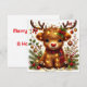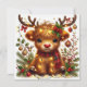 Celebrate the season with this delightful flat holiday card featuring a Highland cow styled as a reindeer, complete with a plaid scarf and glowing holiday lights. A perfect choice for those who love cozy, quirky holiday greetings.