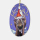 Cute Reindeer Christmas ornaments feature our original artwork of a reindeer decked out for Christmas with a bright red and white Santa Claus hat perched between a big rack of antlers. This humourous reindeer stands in a snowy landscape with a textured starry night sky and a fun blue and orange wavy border behind. On many of our unique gifts and accessories you'll find the fun reindeer coming and going with the reindeer's head on one side and the reindeer's backside on the other. This holiday loving caribou is wearing a holly wreath with a bright red bow on his behind. Share a smile today with that reindeer lover, caribou lover, animal lover, wild animal lover, fun artwork lover on your gift list this holiday season.