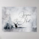 Reindeer in the Wild Grey Watercolor Christmas Poster