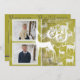 Beaux cartes photos de vacances avec rennes blancs sur un arrière - plan vert avec des flocons de neige muets, texte qui lit Joy, et zones que vous pouvez facilement customiser avec deux photos, vos noms, et l'année en cours.