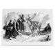 Gorgeous black and white antique engraving illustration from 1888 depicts a beautiful, snow winter scene in which Sami villagers (the true elves?) of Lapland (long thought to be the true arctic home of Santa!) gathering to greet a returning reindeer and driver. The reindeer is in traditional harness dress, hitched to a sled. This lovely Victorian era art is a timeless vintage accent to your Christmas holiday decor as it waits under your tree to be opened on Christmas day.