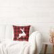 Reindeer Monogram | Deep Red Buffalo Plaid Throw Pillow