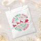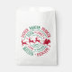 Festive holiday design features Santa and sleigh in centre with names of all the reindeer in circle pattern
