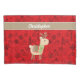 Celebrate the magic of Christmas with a touch of understated luxury. The custom monogram features the name of your loved one in an elegant script front. The adorable reindeer graphic features beige plaid and hand-sewn look, positioned on a red and black festive pattern background.