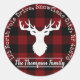 The product design features a silhouette of a reindeer on a classic red and black buffalo plaid pattern. Combined with your own personalized text, this composition makes rustic, modern, and unique return address stickers.