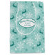 This pretty Holiday gift bag has a teal blue and white pattern of leaping reindeer, snowflakes, and confetti. Each side has a white oval banner with your custom text, so there's no need for a gift tag.