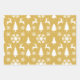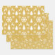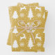 Reindeer Snowflakes Christmas Trees Gold Pattern Wrapping Paper Sheet