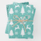 Reindeer Snowflakes Christmas Trees Teal Pattern Wrapping Paper Sheet