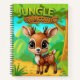 Personalize the back cover of this adorable "Jungle Welcome" notebook! Featuring a unique whimsical wild baby Reindeer cartoon graphic tropical Fawn animal character in a lush forest scene, inviting you into a world of imagination and creativity. This Doe design is perfect for woodland safari lovers, nature wildlife fans, and anyone who enjoys cute Deer and cozy zoo vibes.