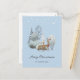 Carte postale Joie Noël avec une scène d'hiver aquarelle avec un dollar et un doe dans une forêt enneigée et des étoiles brillantes au-dessus d'eux. Personnalisez facilement cette belle carte postale de vacances avec votre nom de famille, adresse de retour et texte supplémentaire selon vos besoins.
