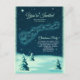 A Christmas party invitation postcard with a vintage illustration of Santa in his sleigh being pulled by his reindeers. Little stars sprinkle the night sky. Snow covered pine trees on the ground. Vintage retro feel.