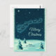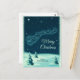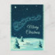 A Merry Christmas holiday greeting postcard with a vintage illustration of Santa in his sleigh being pulled by his reindeers. Little stars sprinkle the night sky. Snow covered pine trees on the ground. Vintage retro feel. Personalized name on the front and personalized message on the back.