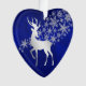 Ce joli ornement de vacances présente une image de renne argenté en silhouette devant un jet de flocons de neige argentés ornés. L'image est placée sur un arrière - plan bleu profond dégradé. L'arrière de l'ornement a le même arrière - plan bleu et des flocons de neige, et un champ de texte pour vous de customiser. Belle !