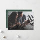 Rejoice always! A wonderful message for any time taken from Christian scripture. This one-photo religious themed Christmas card features simple but elegant type with room for name(s) and year. The back is a modern hunter green that is speckled with stars and snow and includes room for a second photo and a block of text for a personalized message. A perfect way to send Christian holiday greetings!