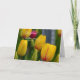 Easter card with yellow tulips and the words "Rejoice! He has risen"