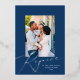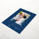 This gorgeous Christmas photo card features a classic dark blue background with the greeting "Rejoice" in raised silver foil a single vertical photo. The greeting continues in flat white ink with "in the Lord always". Followed by your name. This design accommodates a single vertical photo on the front of the card. On the reverse side is the same dark blue background, to which you can add another photo or additional text by selecting the "edit using the design tool" option. Add the "wow" factor with a real pressed foil holiday card this year!