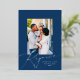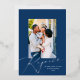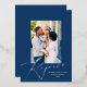 Rejoice Script Religious Christmas Photo Blue + Foil Holiday Card