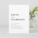 Si vous aimez la simplicité, cette invitation de style simple est faite pour vous. L'invitation présente un design élégant, avec un fond blanc. Au centre, les détails de la fête sont joliment calligraphiés dans une police noire exhalant une atmosphère de sophistication. Accueillez vos invités avec cette invitation de fête classique. La couleur de fond et le texte sont personnalisables.