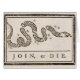 Le dessin animé "Join or Die", symbole puissant de l'unité, a été créé par Benjamin Franklin en 1754. Il est apparu au cours d'une période de tension croissante entre les colonies britanniques en Amérique du Nord et les Français et leurs alliés amérindiens. - La guerre française et indienne se préparait, et Franklin, délégué au Congrès de l'Albany, reconnaissait la nécessité d'une unité coloniale pour contrer efficacement la menace combinée. Il considérait la nature décousue des colonies comme une faiblesse majeure, ce qui entravait leur capacité à organiser une défense coordonnée. - S'inspirant de diverses sources, dont un proverbe français et des illustrations d'histoire naturelle, Franklin a conçu l'image "Join or Die". Le serpent sectionné, divisé en huit segments représentant les colonies, a servi d'avertissement sévère. Il a fait savoir que si les colonies restaient divisées, elles seraient vulnérables aux attaques et finiraient par périr. - Le dessin a été publié dans le journal de Franklin, The Pennsylvania Gazette, le 9 mai 1754. Elle a rapidement attiré l'attention et suscité des débats parmi les colons. Certains y ont vu un appel à l'action, les invitant à s'unir pour leur survie. D'autres l'ont considérée comme alarmiste et inutile. - Bien que le Congrès d'Albany n'ait pas réussi à atteindre son objectif d'établir un gouvernement colonial unifié, le dessin "Join or Die" a laissé un impact durable. Elle devint un puissant symbole d'unité coloniale et annonça l'éventuelle réunion des colonies pendant la Révolution américaine. - Le serpent "Join or Die" réapparaîtra plus tard pendant la guerre d'indépendance, rappelant aux colons l'importance de leur force collective. Il continue d'être reconnu comme un élément important de l'histoire américaine, représentant les premiers appels à l'unité qui ont finalement conduit à la naissance d'une nation.