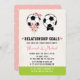 How cute! The charming couple has just scored with this Relationship Goals soccer couples shower invitation with a bride and groom soccer ball on it. The bride soccer ball wears a pink bow and holds a bouquet of pink flowers while the groom soccer ball wears a black bowtie with a pink heart shaped kiss on his cheek. The back of the soccer themed wedding shower invitate has a pink and white polka dot heart pattern. This fun and adorable soccer themed engagement shower invitation is perfect for the couple who loves, coaches or plays soccer, or futbol and football, as it is known to rest of the world! Artwork © Chrissy H. Studios, LLC. All rights reserved.