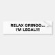 RELAX GRINGO... I'M LEGAL!!! BUMPER STICKER