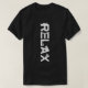 Stylish vertical text Relax decorated with relaxing male silhouettes. Funny, one-of-a-kind t-shirt for men. Black or dark background. Do not forget to choose another style, size, colour, and gender of the shirt. You can also transfer this design to another product, just use the option hereinafter. Have fun, buy one, and be happy!