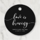 Wedding favour tags featuring the words "Love is Brewing" in a relax cursive script in white against an editable background colour (click customize to change both sides colour).