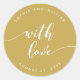 Wedding favour sticker featuring the words "with love" in a relax cursive script in white against an editable background colour (click customize to access).