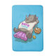 A bath mat featuring a rhino on a lilo; a happy rhinoceros, chilling out on a bright pink inflatable in the pool, with a rubber duck and a refreshing drink on a floating tray. Use "Personalize this template" to change the "BATH TIME" text if desired.