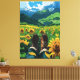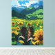 "Relaxing in Sunflower Paradise" offers a mesmerizing glimpse into a moment of calm and adventure. The artwork portrays a traveller resting in a vast sunflower field, with rugged boots adding a touch of wanderlust. Towering green mountains and snow-capped peaks stand majestically in the background, all under a brilliant blue sky.