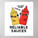 Reliable Sauces Funny Food Pun features a cute ketchup and mustard sauce bottles . Perfect pun gift for family and friends who love cute food sauce puns.