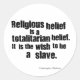 Religious belief is a totalitarian belief. It is the wish to be a slave.